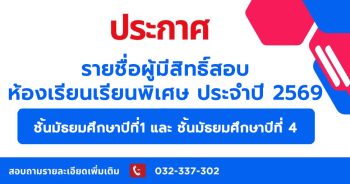 ประกาศรายชื่อผู้มีสิทธิ์สอบห้องเรียนพิเศษ ชั้นมัธยมศึกษาปีที่ 1 และชั้นมัธยมศึกษาปีที่ 4 ประจำปีการศึกษา 2569 16/02/202616/02/2026 ชั้นมัธยมศึกษาปีที่ 1 ชั้นมัธยมศึกษาปีที่ 4 admin16/02/2026